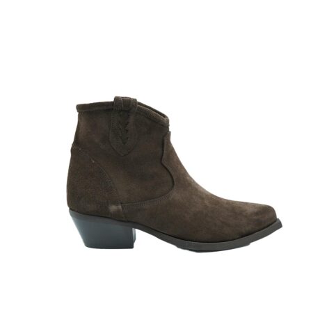 • stivale in camoscio, zip interna, occhielli e frange laterali, tacco 20mm