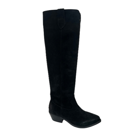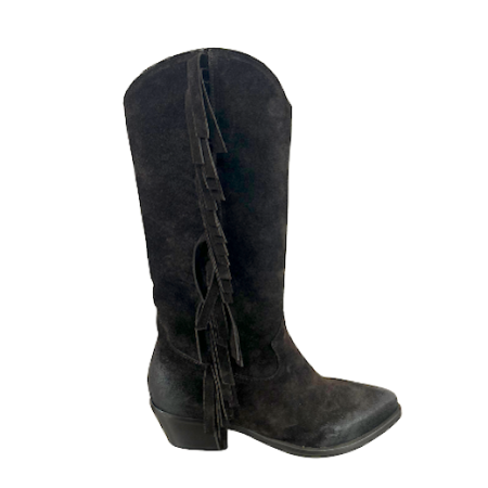 • texano in camoscio, punta quadrata, gambale risvoltato, occhiello posteriore, tacco 40mm