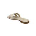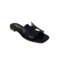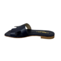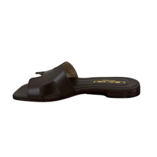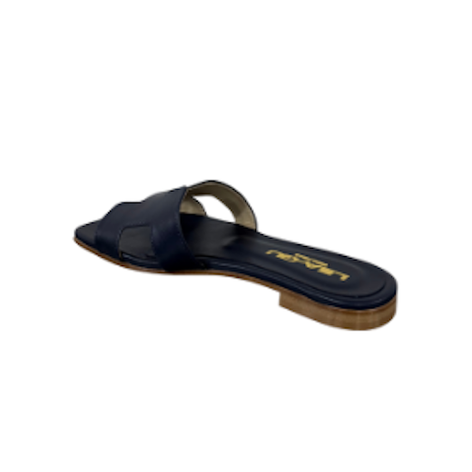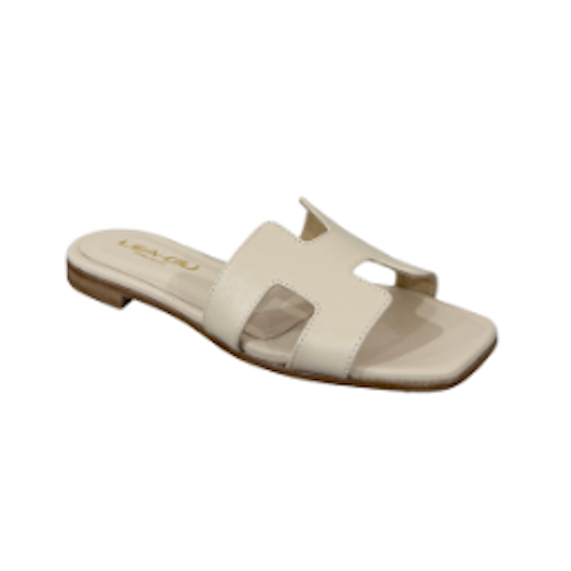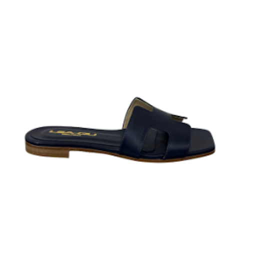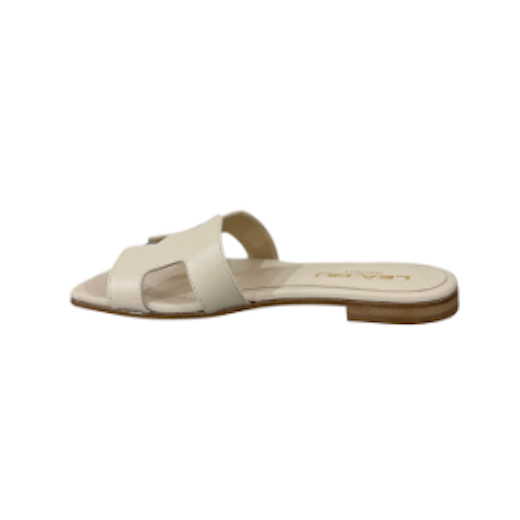 Sandalo in pelle con design minimal, perfetto per completare i tuoi look con stile. Presenta una fascia frontale dal design geometrico. Suola in cuoio e tacco 10mm.